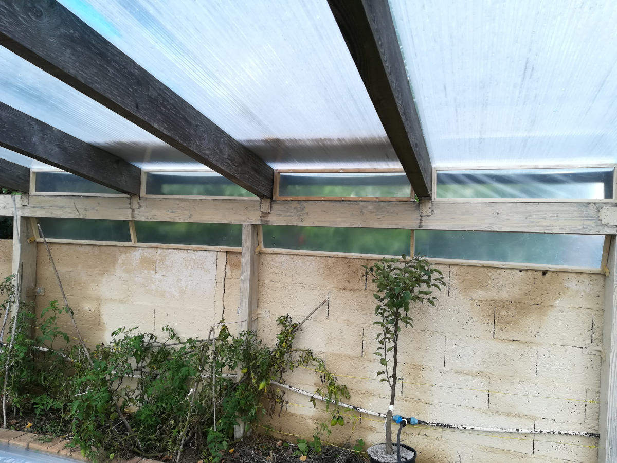 Mais… Si la température augmente vraiment comme cet été 2022, avec plus de 30 jours au dessus de 34° et des pointes dépassant 40°, il est impératif de pouvoir laisser la serre aussi ouverte que possible.