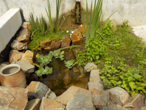 La circulation de l’eau, amenée par les pompes du bac à arbres et la pompe principale, assure une oxygénation de l’eau suffisante pour les plantes aquatiques et les poissons.