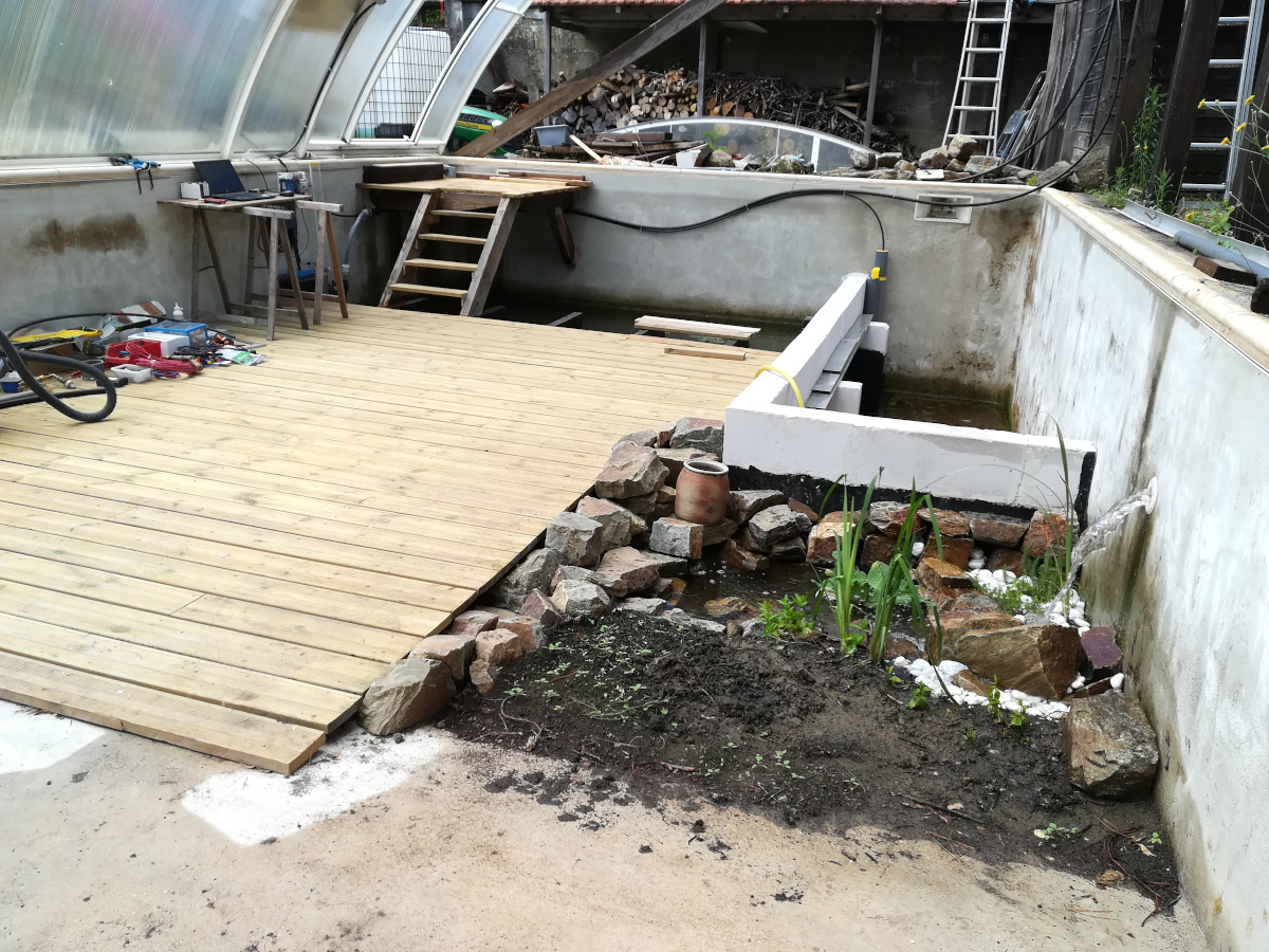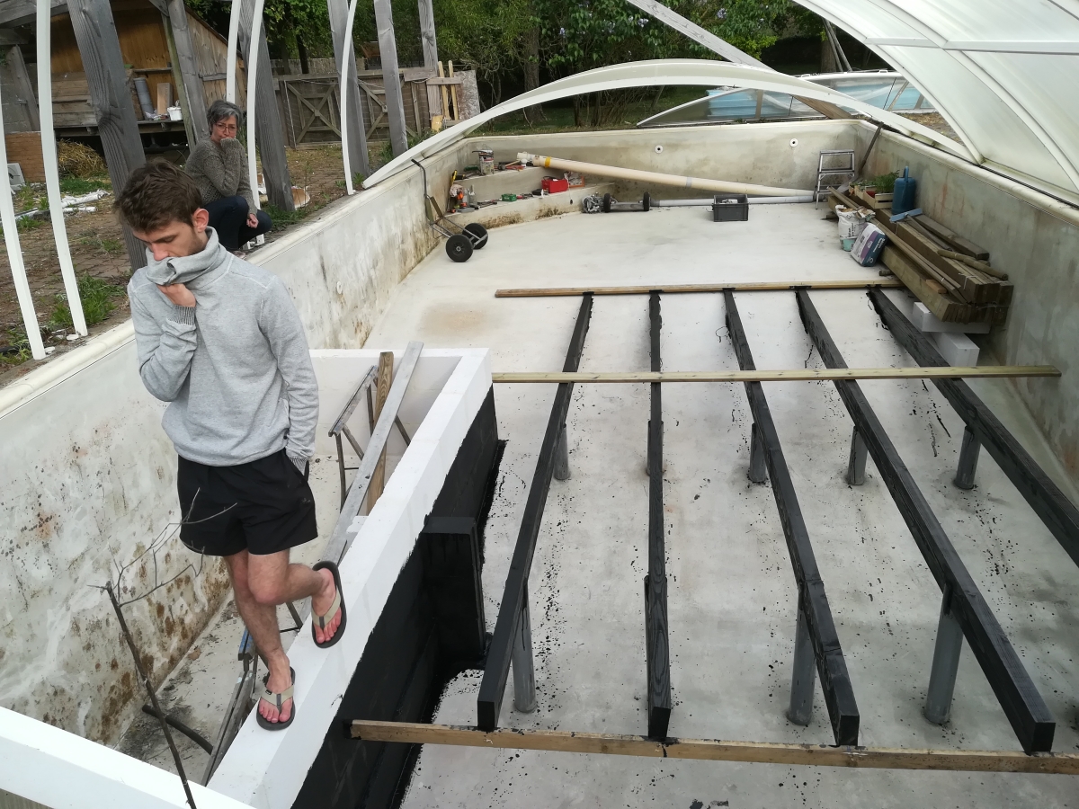 piscine en 2007piscine en 2007grand bac en constructionsupport de terrasse et grand bacsupport bitumécharpente en appui sur le murcharpente en constructioncharpente en constructioncharpenteterrasse et plateau daccèsrampe d’accèsfontaine et vasièrefond de bassinbassin